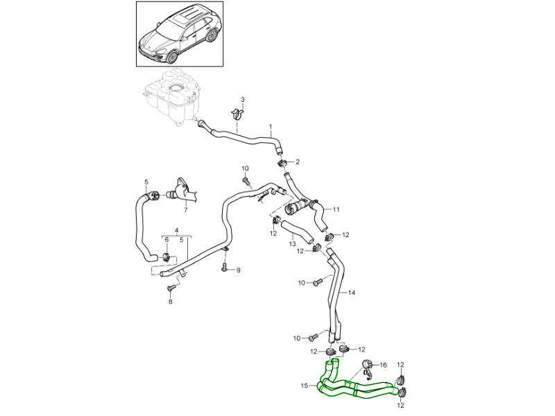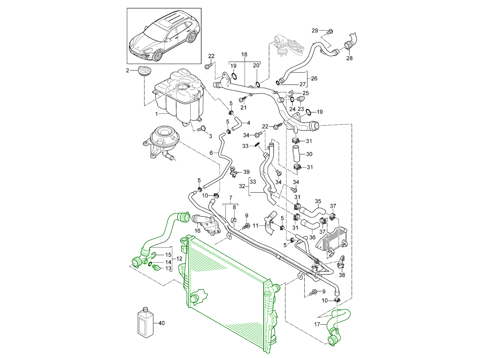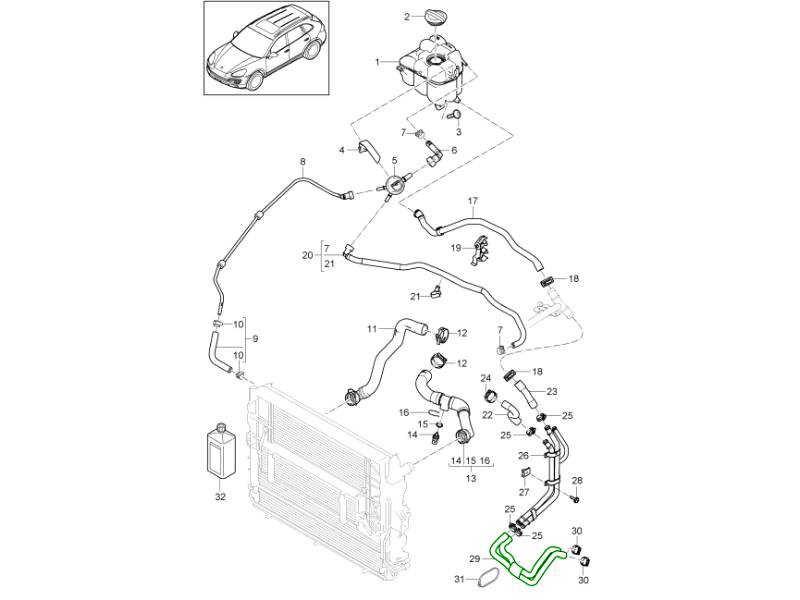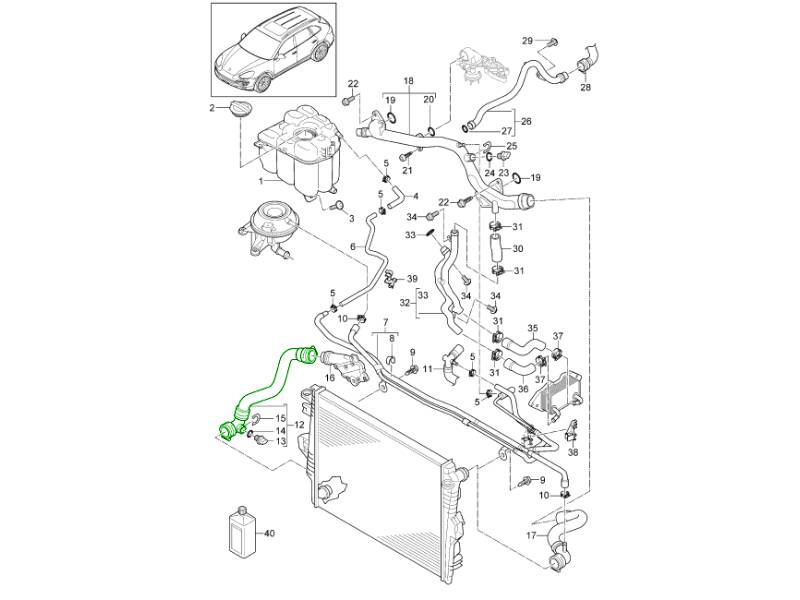 Heat management is crucial in a hybrid SUV like the Cayenne. Over time, radiators can lose efficiency as fins corrode or clog, hoses can harden and crack, and mounts can wear, leading to: