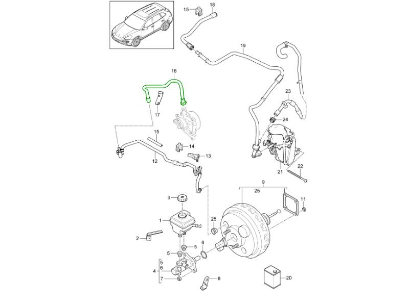 The Brake Booster Vacuum Line is a genuine Porsche braking system component designed to deliver vacuum pressure from the engine (or vacuum pump) to the brake servo/booster. This vacuum supply is essential for providing power-assisted braking, ensuring the brake pedal remains light and responsive during normal driving.