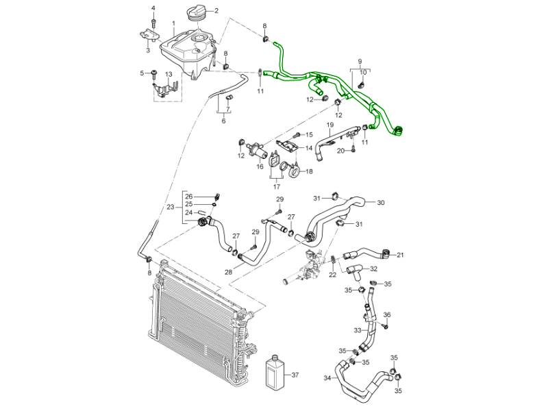 The Coolant Hose (Complete) is a genuine Porsche cooling system hose assembly designed to provide reliable coolant flow through the engine’s cooling circuit. Supplied as a complete hose unit, this component is manufactured to OEM standards to ensure correct fitment, secure sealing, and dependable performance under high temperature and pressure conditions.