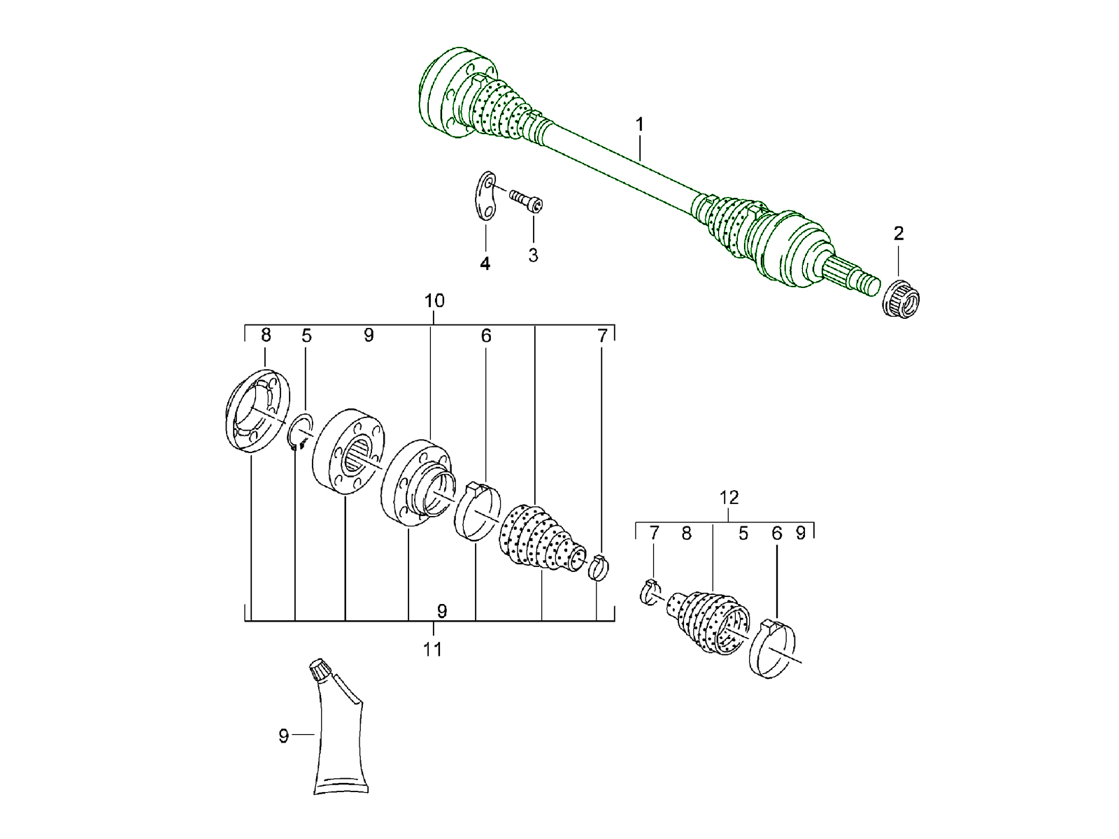 Genuine Porsche original equipment (OE) rear drive shaft assembly, also known as a constant-velocity (CV) axle. It is manufactured to Porsche’s exact factory specifications and is used on selected Porsche 991 (911) models to transmit engine torque from the differential to the driven rear wheel with precision and reliability.