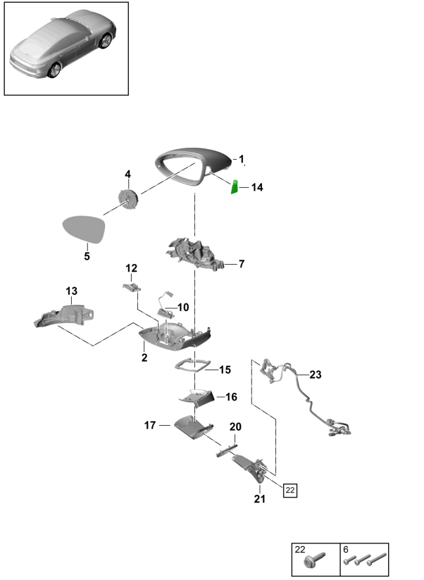 For cars with Electrically retractable mirrors with automatic dimming in comb. with memory (261)