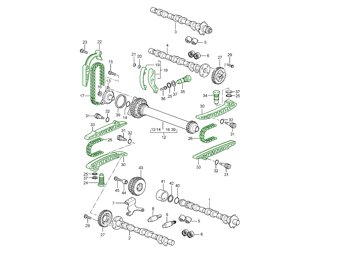 Restore the integrity of your engine’s timing system with this complete timing chain kit. First generation 997 engines are equipped with 3 chains. This kit replaces all chains along with the associated guides, tensioners, and hardware for a full system refresh.