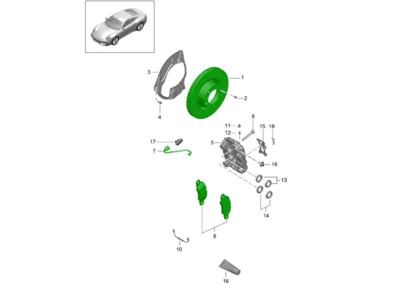This Front Brake Disc & Brake Pads Package is a complete OEM-quality braking solution for Porsche 911 (991) S 3.8L model equipped with standard steel front brakes. The kit features high-performance Zimmermann front rotors and front brake pads, and the correct Porsche front wear sensor — delivering everything needed to restore full braking performance, pedal feel, and safety.