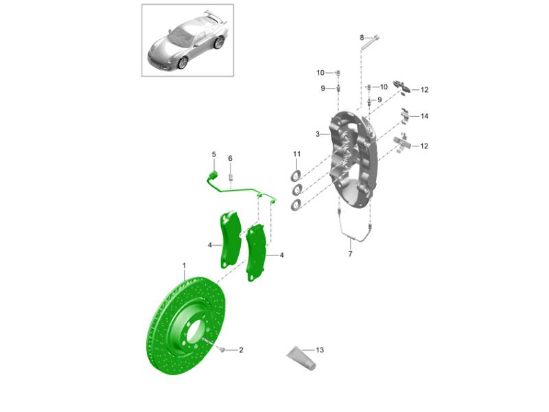 Erneuern Sie die vordere Bremsanlage Ihres Porsche 911 (Generation 992) mit serienmäßigen Stahlscheibenbremsen (Komfortausstattung).