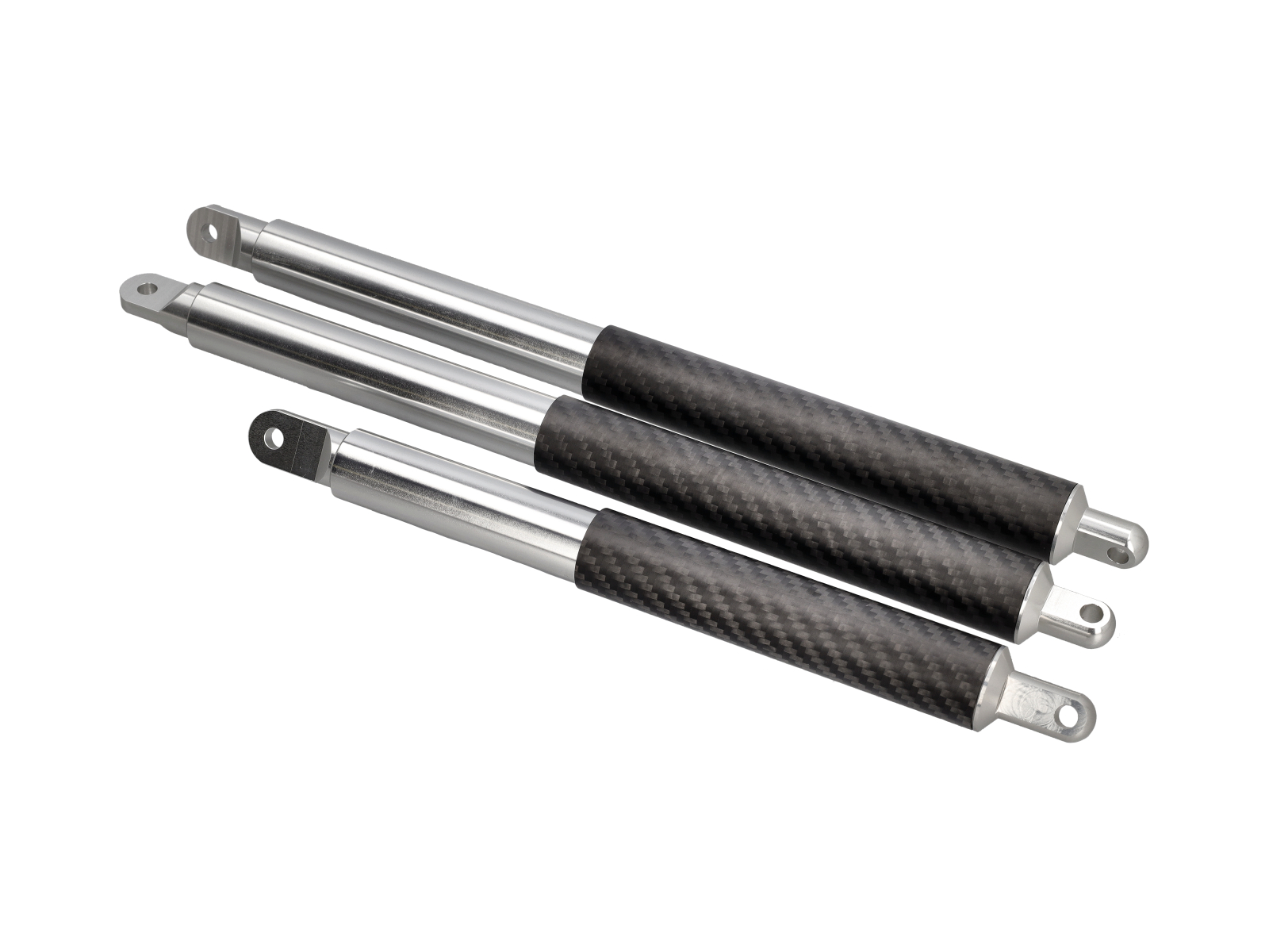Spezielle Porsche-Motorhaubendämpfer für Renn- und Leichtbauanwendungen. Hohe Zuverlässigkeit bei minimalem Zusatzgewicht.
