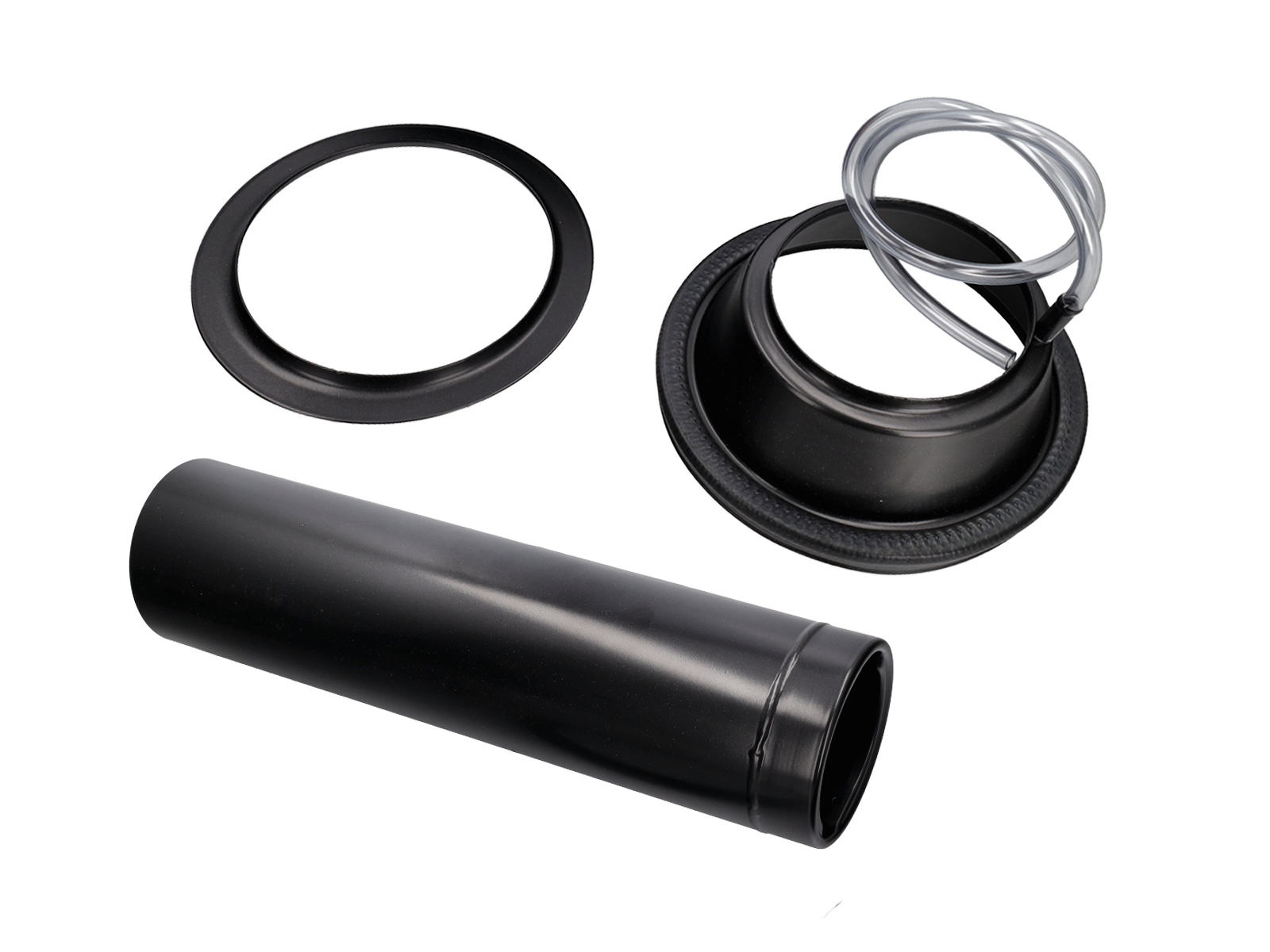 Zusätzlich zum Kraftstofftank erhalten Sie: den Tankverschluss mit Zapfpistole, das Spannband und eine Spannklemme.