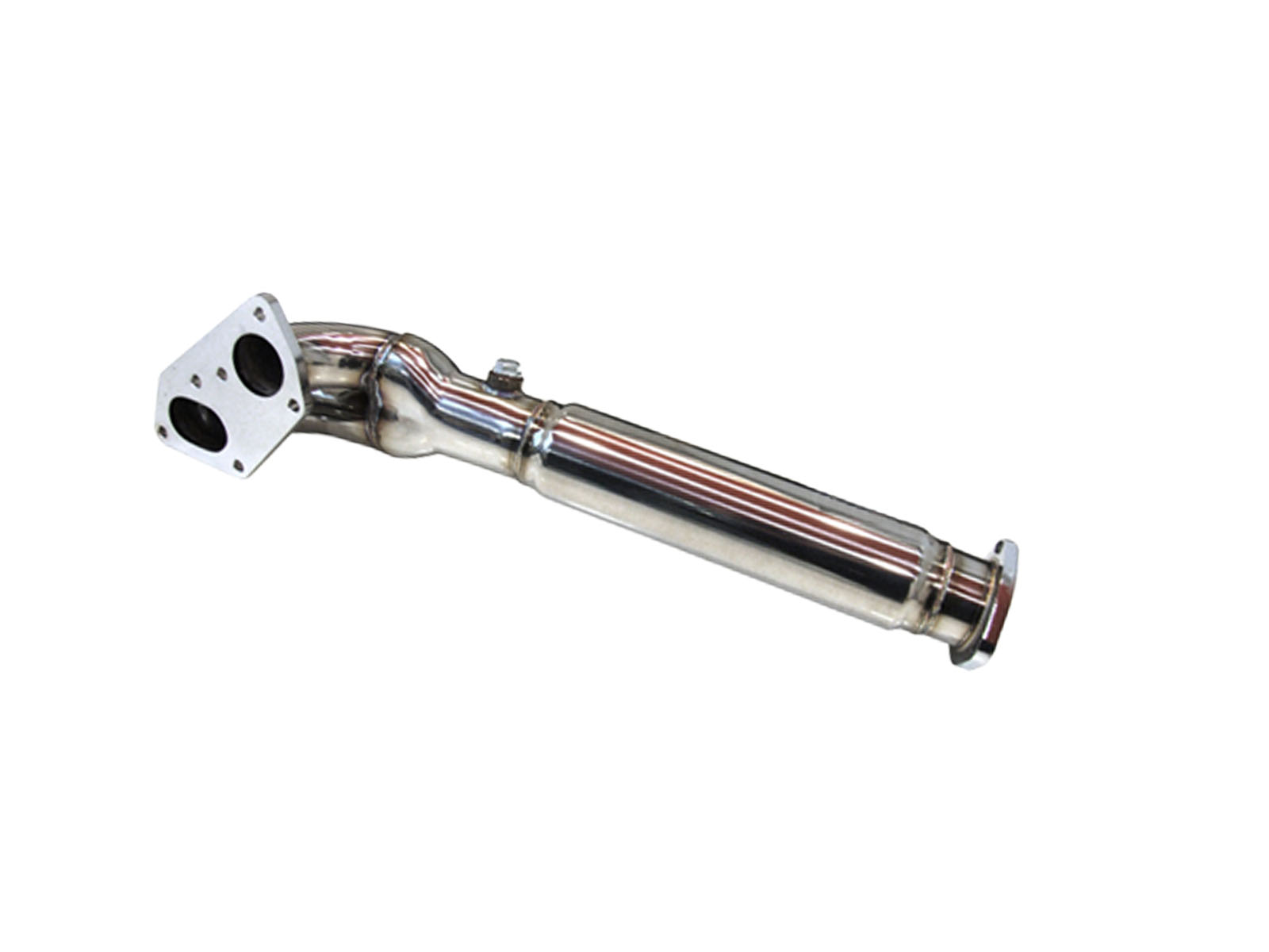 Ersatz-Vorschalldämpfer aus T304-Edelstahl mit poliertem Showcar-Spiegelglanz. Passend für Fahrzeuge mit oder ohne Sauerstoffsensoren. Genau wie der deutsche Catbypass-Euro-Vorschalldämpfer von Porsche.