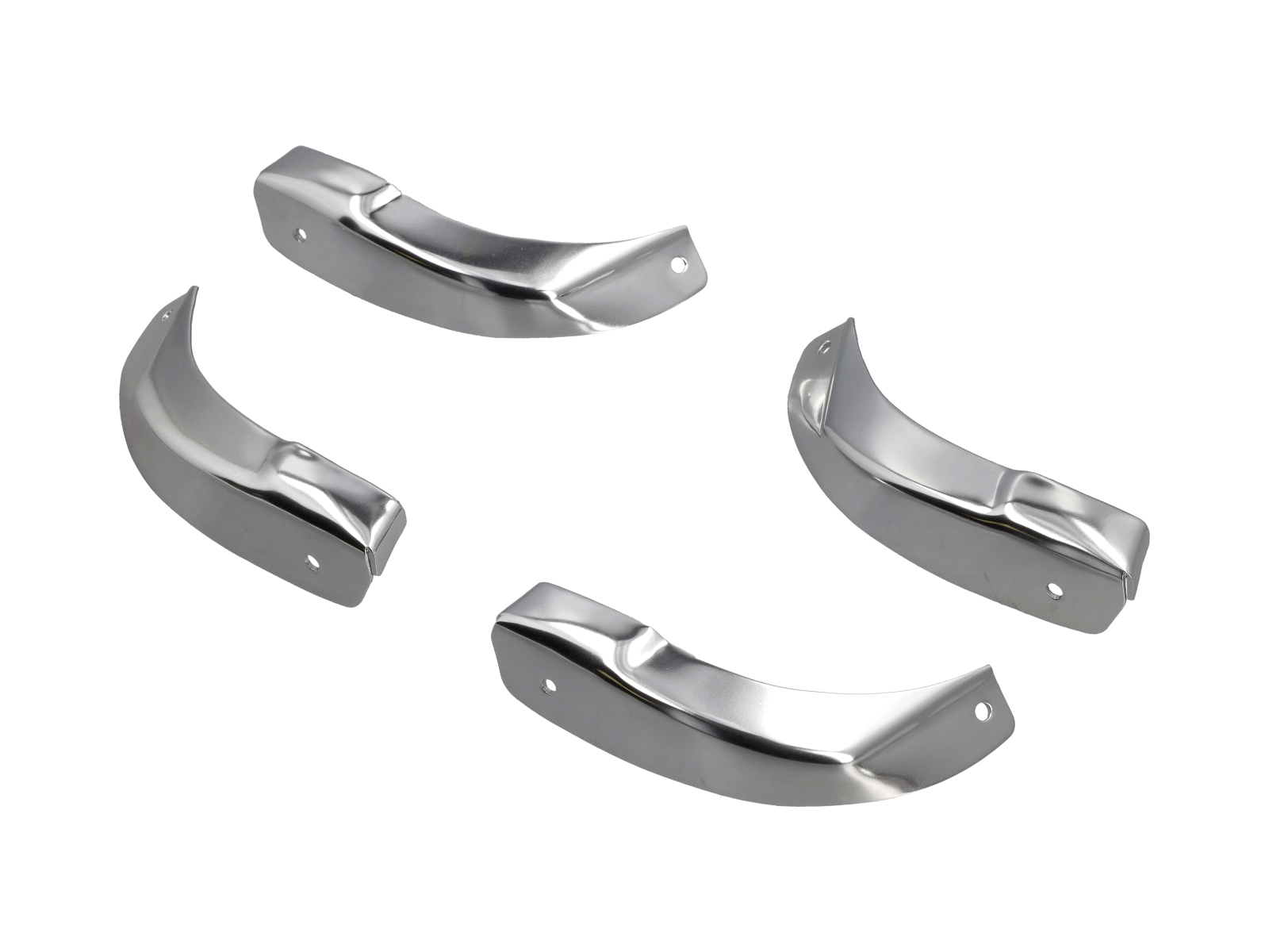 Dieses Türschwellenabdeckungsset umfasst zwei polierte Edelstahlplatten, die die originalen werkseitigen Schwellenleisten links und rechts der Türschwelle ersetzen sollen.