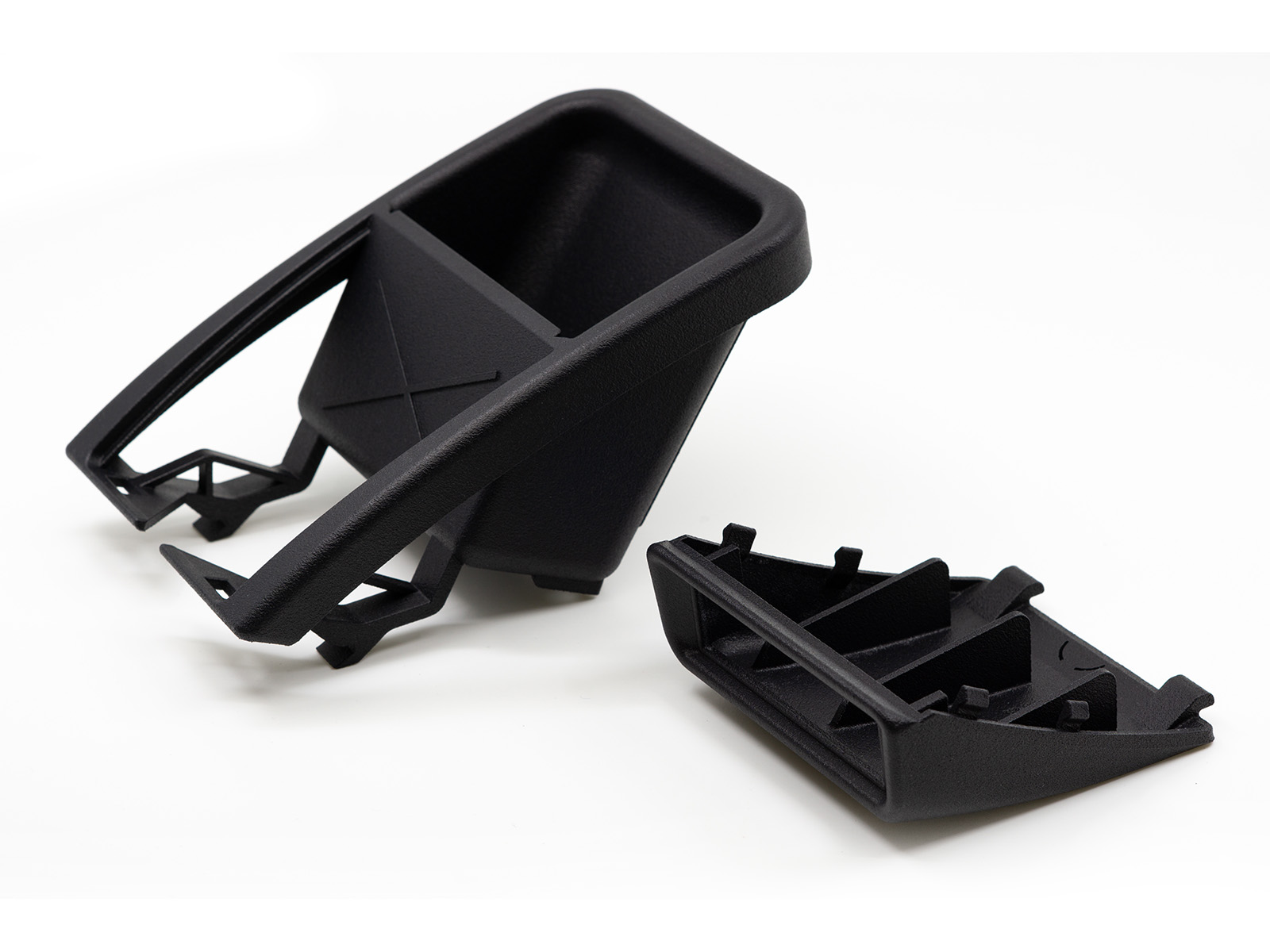 Das aus schwarzem PA12-Nylon gefertigte Teil bietet eine ausgezeichnete Haltbarkeit und eine Oberfläche, die typisch für Kunststoffe im Fahrzeuginnenraum ist.