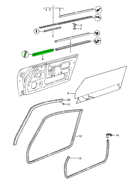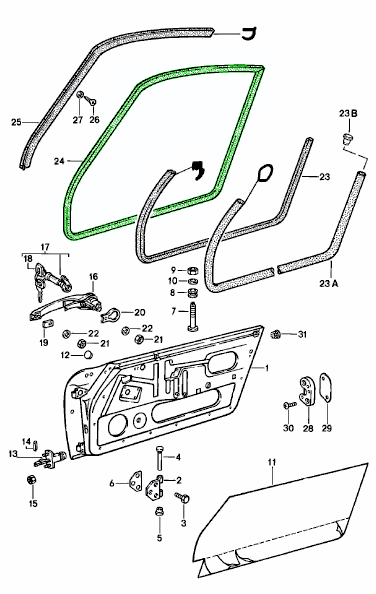Innere Glaskanaldichtung. Porsche 911 / 964