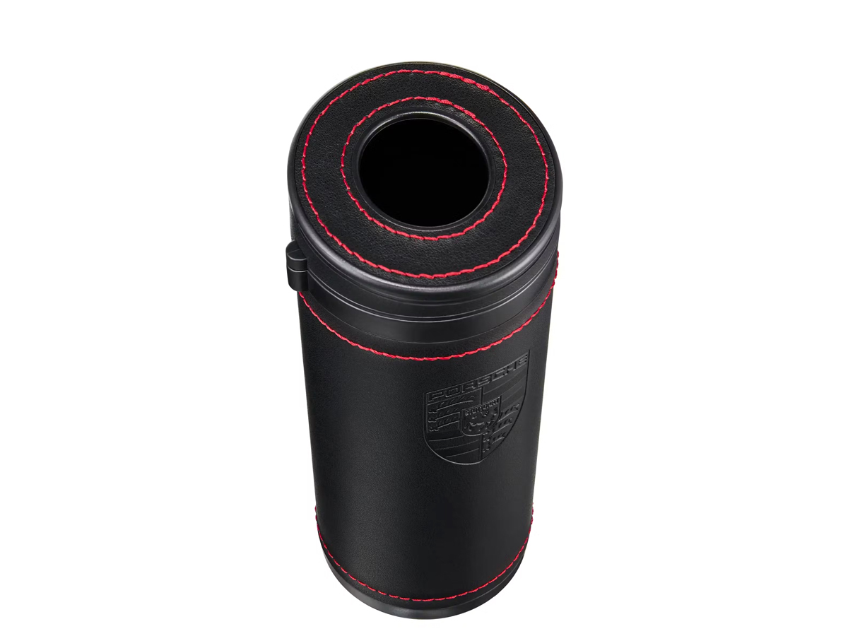 Immer griffbereit: Konzipiert für den Getränkehalter eignet sich die schicke Taschentuchbox von Porsche perfekt für den Einsatz im Auto. Mit seinem cleanen Design, der schicken roten Ziernaht und dem geprägten Porsche Wappen macht er auch optisch eine gute Figur.