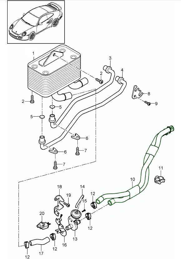 - PDK - Getriebe / Wärmetauscher / Ölrohr / Wasserrohr - CG100, CG130 - 997.2 Carrera 2009-12 360-000