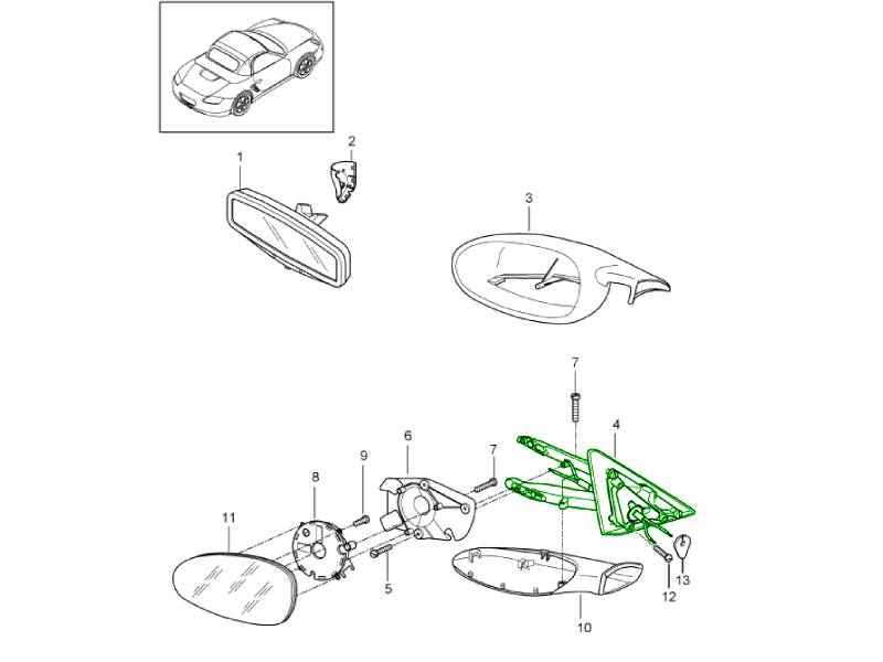OEM- und Reproduktions-Außenspiegel von Porsche für Fahrer- und Beifahrerseite. Erhältlich in manueller, elektrischer und beheizter Ausführung, passend für alle Modelle.