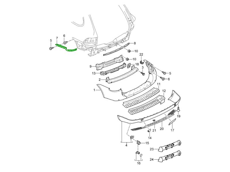 Präzisionsgefertigte Porsche-Heckstoßstangenhalterungen, die stabile Befestigungspunkte für die Stoßstangenbaugruppe bieten und so eine sichere Befestigung und Ausrichtung gewährleisten.