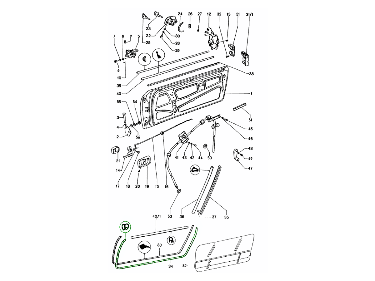 Estas juntas internas para puertas, que se ajustan perfectamente a las especificaciones originales de Porsche, son componentes de repuesto de alta calidad diseñados para replicar dichas especificaciones en cuanto a ajuste, sellado y durabilidad. Instaladas en la estructura interna de la puerta, estas juntas forman una barrera protectora entre el panel de la puerta y la cavidad interna.