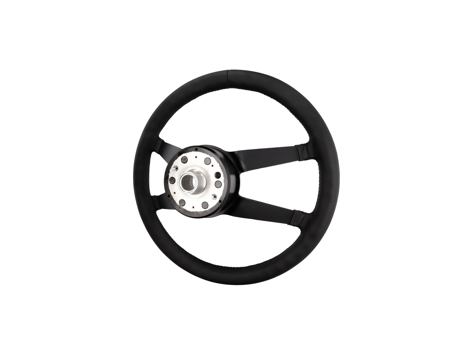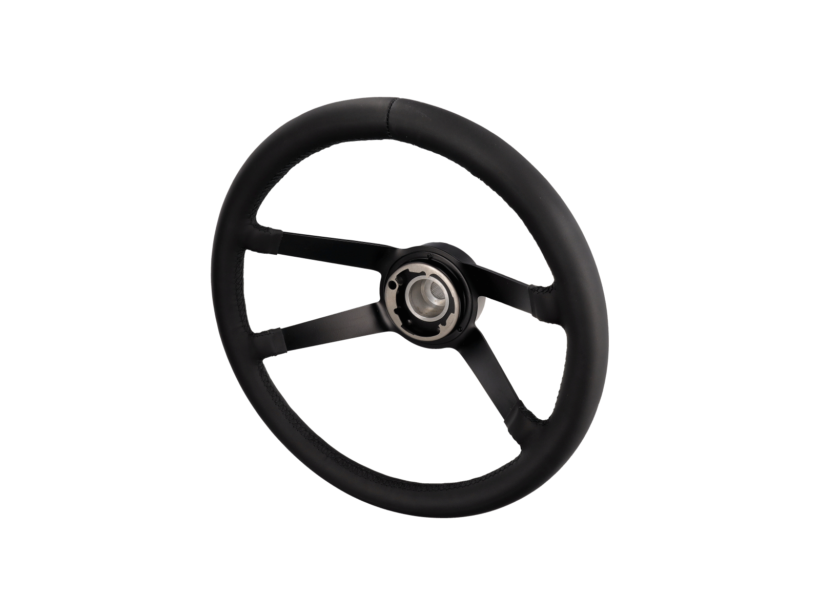 Este volante forrado en cuero es un repuesto de primera calidad diseñado para el Porsche 911 clásico (1969-73) y modelos 914 compatibles. Cuenta con un aro de 380 mm de diámetro, un revestimiento de cuero premium con costuras finas y un estriado de buje diseñado para adaptarse al buje original de la columna de dirección Porsche.