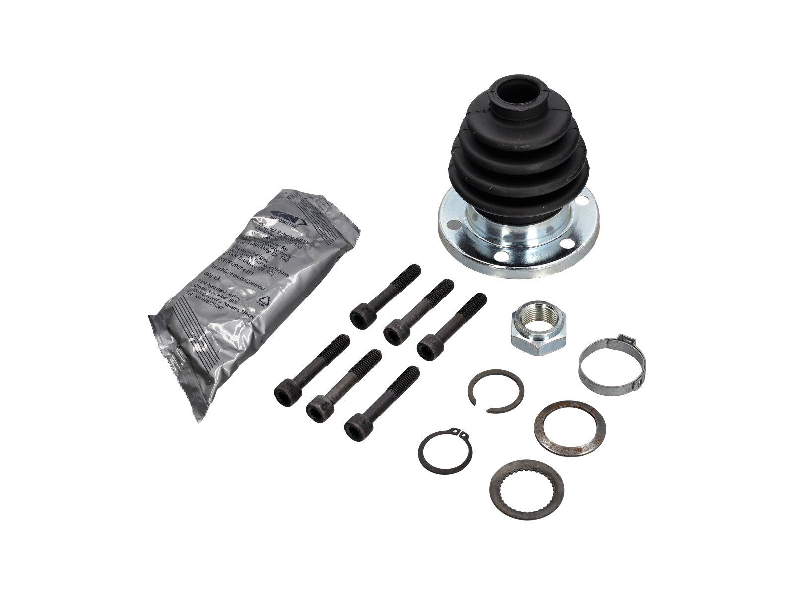 Este kit de fuelle de eje homocinético de primera calidad es la solución ideal para restaurar su sistema de suspensión. Incluye todo lo necesario para una reparación adecuada y duradera: fuelle de goma de alta calidad, grasa para eje homocinético, arandela y circlip, todo en un práctico empaque para una instalación completa y sencilla.