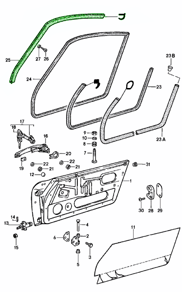 Junta de sellado del marco de la ventana a la puerta. Porsche 911 74-89 / 964