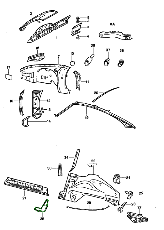 Dale vida a tu Porsche con los paneles de restauración de la parte trasera y reparación del chasis de Design911. Nuestra amplia selección de paneles de carrocería con calidad OEM y diseño de precisión incluye travesaños traseros, secciones de piso, soportes de motor y soportes de parachoques diseñados para adaptarse perfectamente a modelos Porsche clásicos y modernos. Cada componente restaura la resistencia, la alineación y la seguridad originales de fábrica, garantizando la integridad estructural y la autenticidad durante las reparaciones o restauraciones. Ya sea que estés reconstruyendo un 911 clásico, reparando un Cayman o restaurando un 356, Design911 te suministra las piezas de alta calidad en las que confían los talleres Porsche y los especialistas en restauración de todo el mundo.