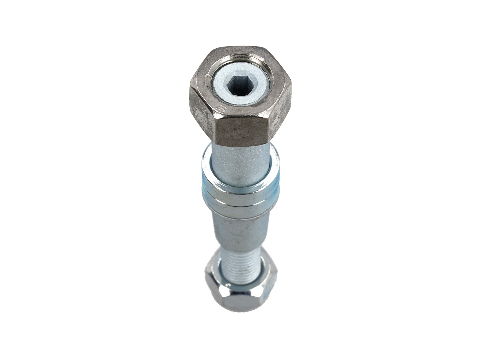 El kit incluye : 1 perno cónico, 1 tuerca de seguridad superior, 1 tuerca de seguridad inferior, 2 espaciadores/arandelas de perno