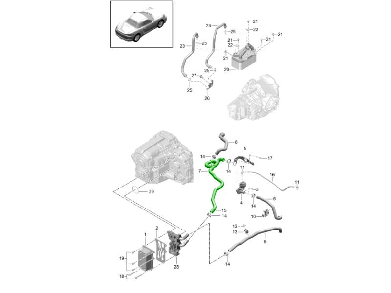 - Componentes esenciales del sistema de refrigeración de la caja de cambios Porsche