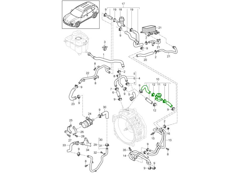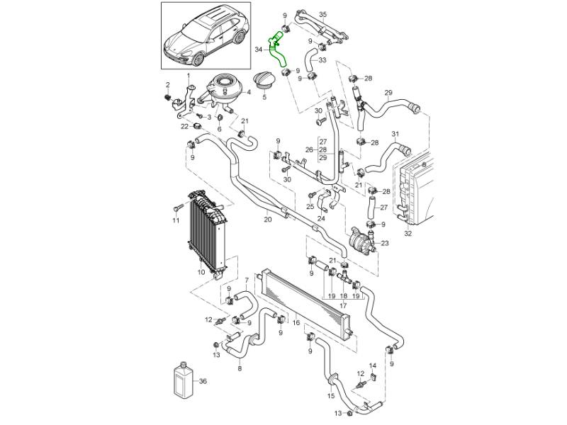 Sistema de refrigeración de refrigerante / Tanque de expansión de refrigerante (PR:D19,D11) Cayenne 92A (958) 3.0L gasolina / 3.0L HYBRID 2011-18 105-060