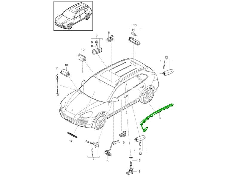 Luces interiores / Luz del maletero / Testigo de puerta / Luz del espacio reposapiés / Luz / Retrovisor exterior Cayenne 92A (958) 2015>> 903-003