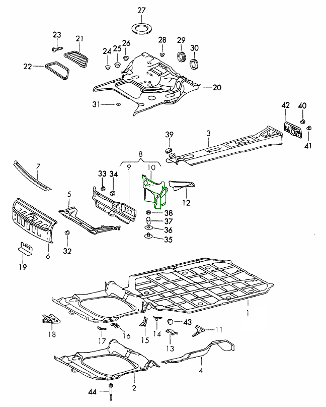 Panneaux de plancher intermédiaires de type OEM conçus pour un ajustement et une rigidité parfaits. Restaurez la structure du soubassement de votre Porsche avec une précision digne d'usine.