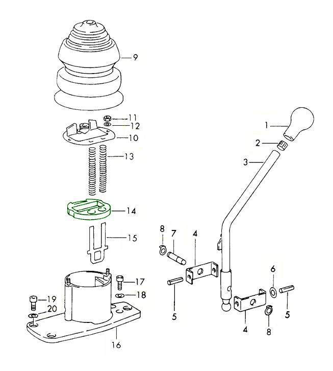 Boîte de vitesses de tringlerie de changement de vitesse intérieure. Porsche 356 / 911/912 65-75 / 914