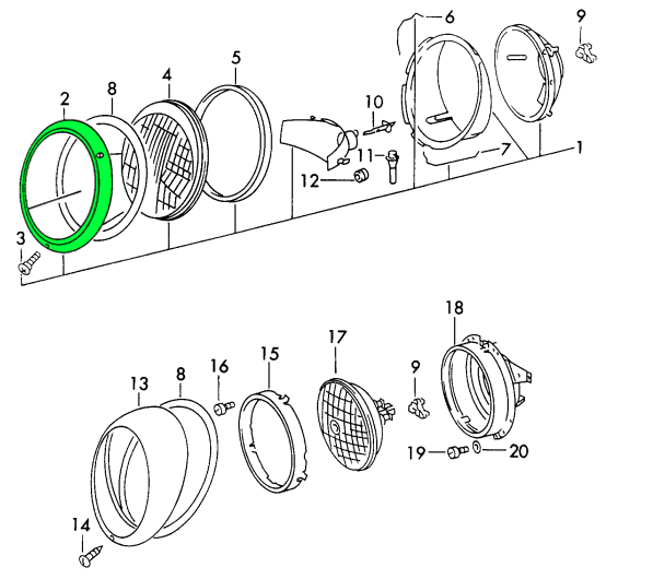 Anneau de phare pour phare étanche. Porsche 911 1965-73