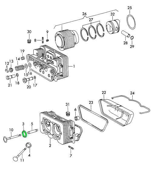 Il s'agit du guide de soupape standard utilisé dans les premières culasses refroidies par air des Porsche 911/930. Ce guide simple (non hydraulique) maintient la tige de soupape dans la culasse ; une usure provoque une combustion d'huile, une perte de compression et un mauvais positionnement des soupapes. Il est donc fréquemment remplacé lors de la reconstruction des culasses.