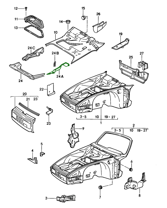 Panneaux et kits de renforcement complets de la section médiane Porsche pour applications classiques et de course, améliorant la rigidité en torsion et la longévité.