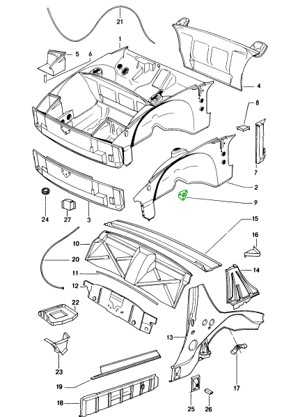 Panneaux de restauration d'ailes et de garde-boue intérieurs de style OEM offrant une résistance structurelle et un ajustement de précision pour les réparations de carrosserie Porsche.