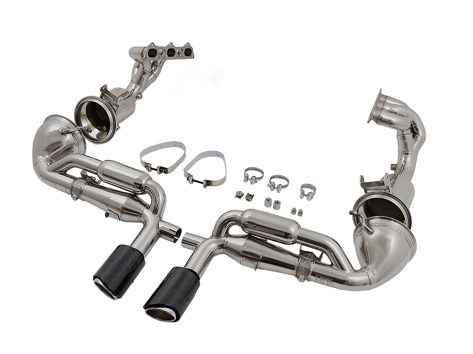Les échappements DesignTek® sont conçus pour sublimer le son et les performances de votre Porsche 992 GT3 / GT3 RS. Ce kit comprend un catalyseur avec soupapes, des collecteurs et des sorties d'échappement en fibre de carbone.