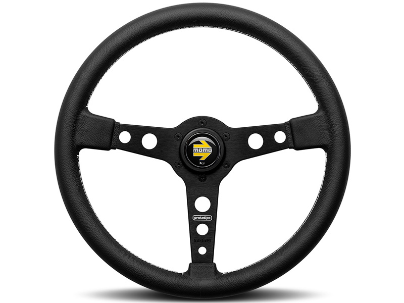 Les caractéristiques haut de gamme incluent un bouton de klaxon en cuir tabac et des coutures marron parallèles, ce volant utilise le même diamètre de poignée que le MOMO Prototipo classique.