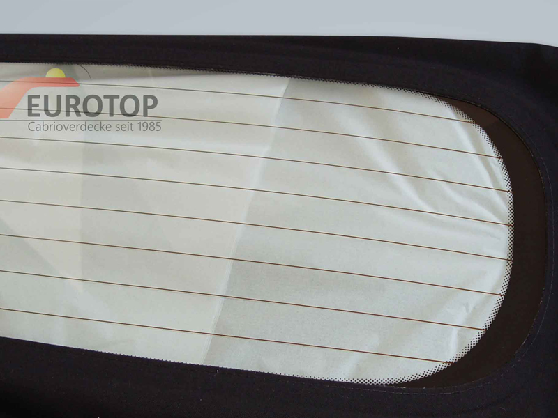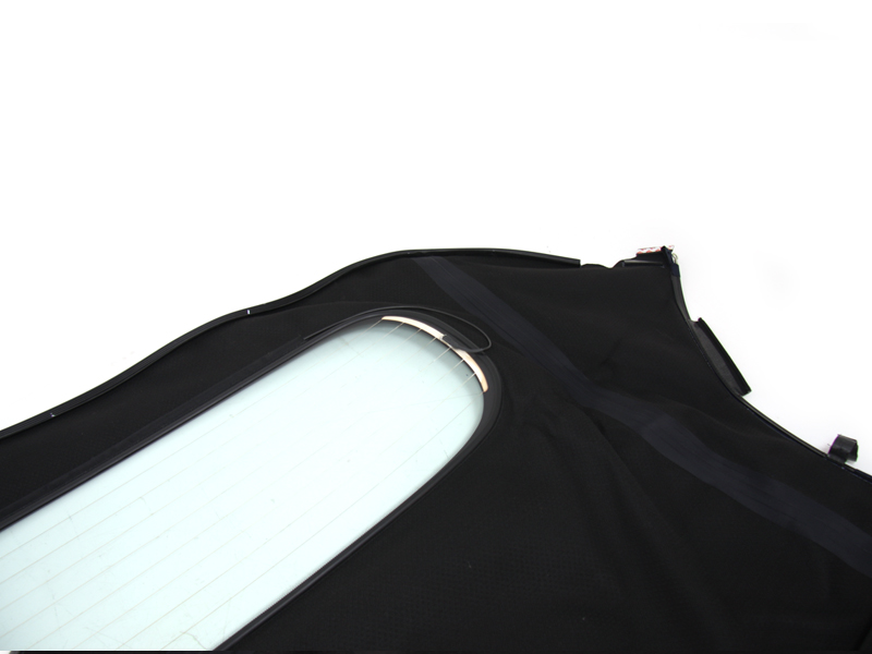 Lunette arrière en polyglass flexible, de la même épaisseur (1 mm) que l'original, certifiée TÜV et cousue en permanence.