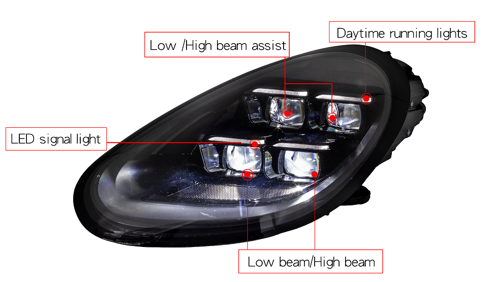 Ces phares sont conçus comme une mise à niveau directe et facile à installer pour les modèles Porsche 987.2 équipés de phares au xénon d'origine avec éclairage dynamique en virage.