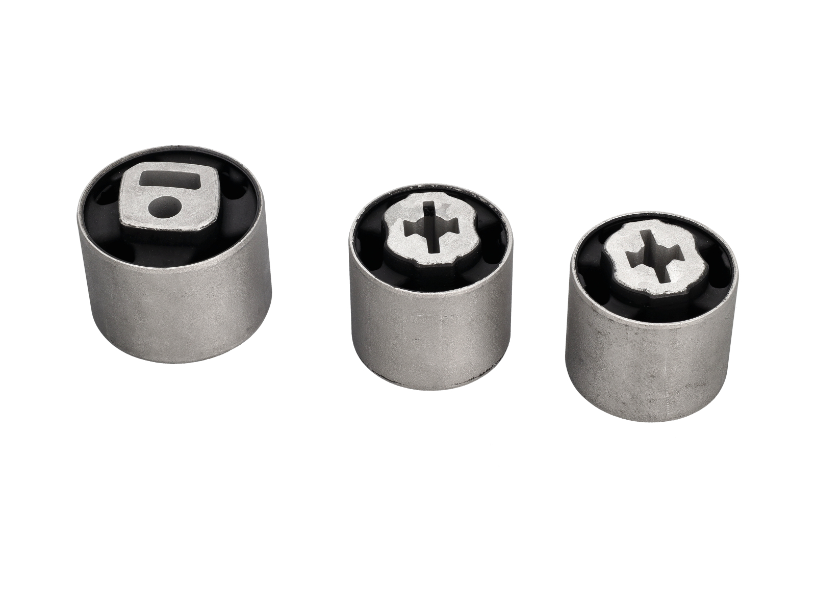 Les silentblocs de différentiel fixent ce dernier au berceau moteur. Avec le temps, le caoutchouc s'oxyde, se détend et se détériore naturellement sous l'effet des conditions de conduite et des intempéries. L'usure des silentblocs peut entraîner un déplacement du différentiel, provoquant des à-coups à l'accélération, des vibrations dans tout le véhicule et une usure prématurée de l'arbre de transmission et des roulements de différentiel.