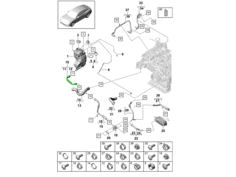 La durite de liquide de refroidissement est une durite d'origine Porsche (OEM) conçue pour transporter le liquide de refroidissement dans le système de refroidissement des Porsche Panamera (971). Cette durite assure une circulation fiable du liquide de refroidissement entre les principaux composants du système, contribuant ainsi à réguler la température de fonctionnement du moteur et à maintenir une dissipation thermique efficace. Fabriquée selon les spécifications Porsche, elle offre un ajustement précis, une excellente résistance à la chaleur et à la pression, ainsi qu'une grande durabilité.