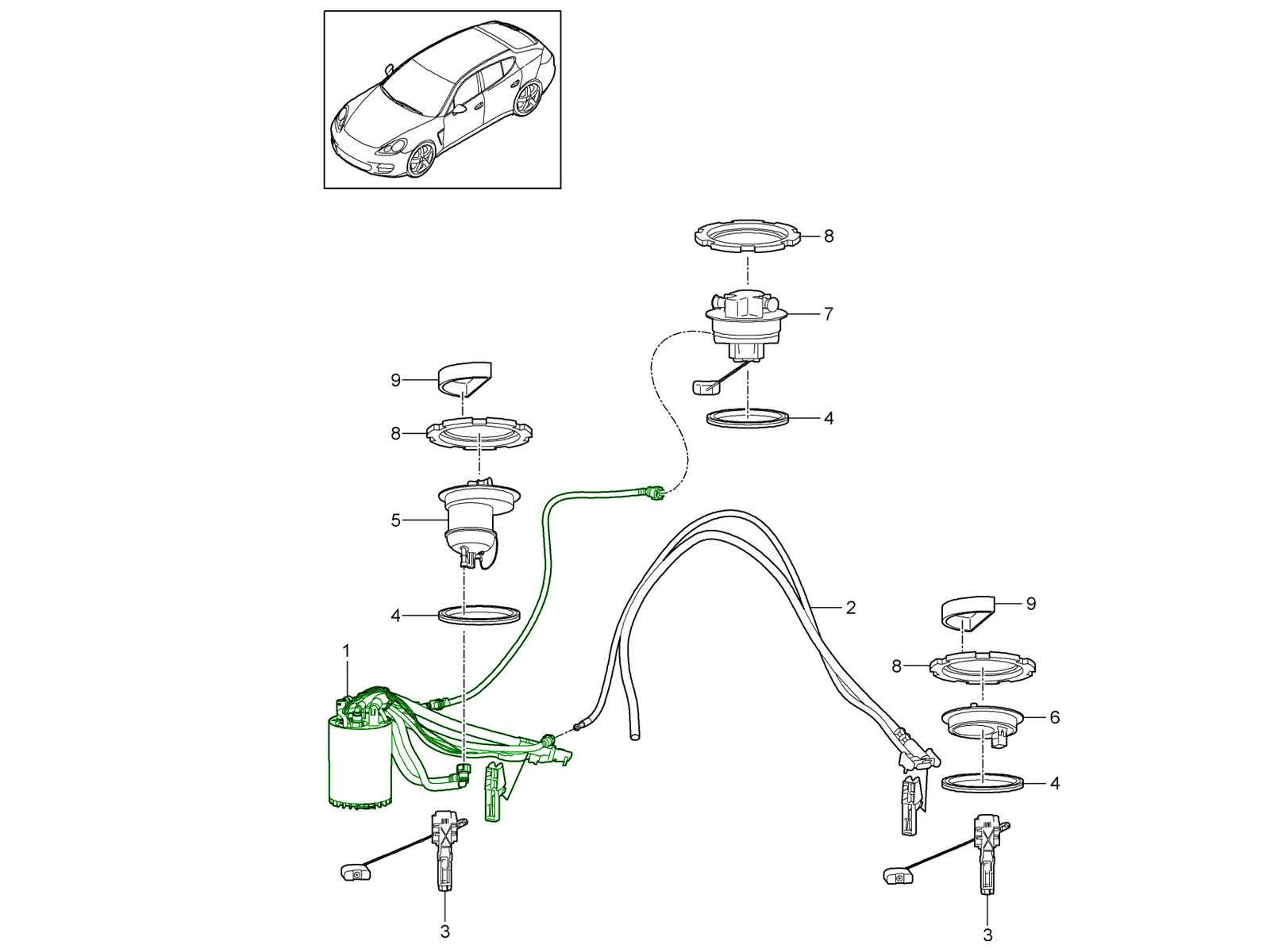 Cette pompe à carburant d'origine Porsche (référence 97062013802) est une pompe électrique immergée d'origine, conçue pour la Porsche Panamera de la génération 970. Ce module d'alimentation en carburant complet assure une pression et un débit de carburant optimaux pour les systèmes d'injection Porsche.