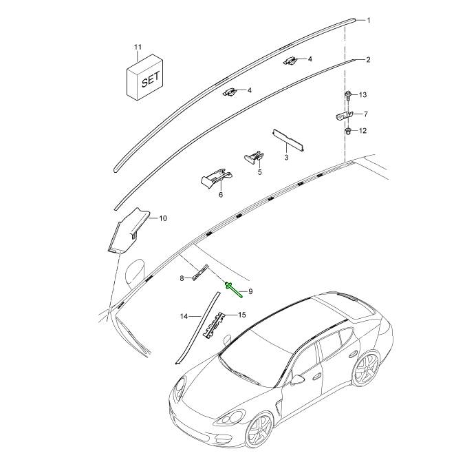 Bande de bord de toit Panamera 970 (G1) 2010-16 810-015
