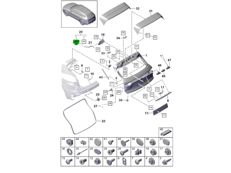 La serratura del portellone posteriore è un componente essenziale del sistema di chiusura del portellone del veicolo, progettato per bloccare il portellone posteriore quando è chiuso. Questo meccanismo di bloccaggio si innesta con il fermo del portellone e con il sistema di chiusura centralizzata per mantenere il vano bagagli chiuso in modo sicuro sia durante la guida che a veicolo parcheggiato.