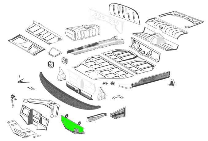 Riproduzione accurata delle paratie e dei pannelli del pavimento anteriori, progettati per durare a lungo e in linea con l'ingegneria originale Porsche.