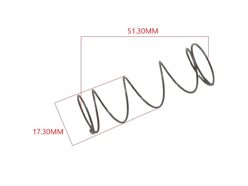 Questa molla di ricambio si monta sul cilindro della serratura all'interno della maniglia della porta, fornendo la tensione di ritorno necessaria per un funzionamento fluido. Agisce in compressione contro la clip a C e la rondella per mantenere il corretto allineamento e il corretto ritorno elastico.
