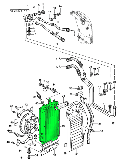 Radiatore olio radiatore, anteriore. Porsche 911 1980-89