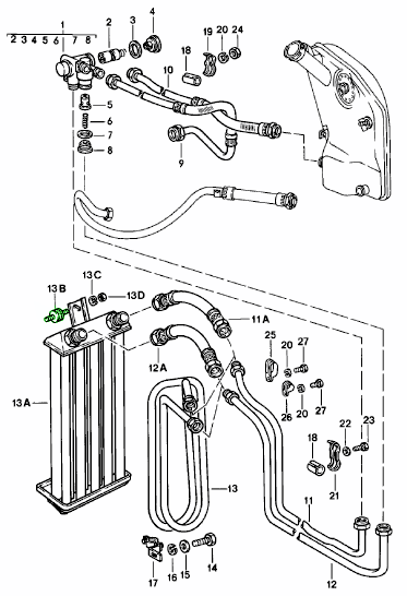 S tubo radiatore olio al serbatoio. Porsche 930Turbo 1977-89