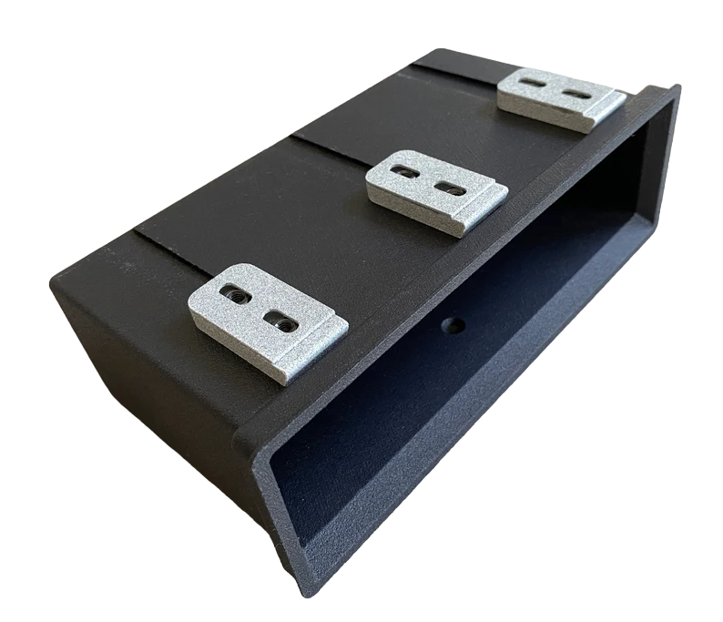 L'installazione prevede lo scorrimento della tasca nell'apertura, quindi lo scorrimento dei quattro blocchi di fissaggio (tre nella parte inferiore, uno nella parte superiore) dal retro della tasca nelle guide. Questi blocchi fissano saldamente la tasca al cruscotto in metallo. Una volta posizionati i blocchi, utilizza un ago sottile o un chiodo per allineare i dadi all'interno dei blocchi con i fori nella tasca. Infine, fissa il tutto con sette viti (questo deve essere fatto all'interno della tasca, quindi è meglio usare un cacciavite con testa a croce; stretto con le dita dovrebbe essere sufficiente, non stringere eccessivamente).