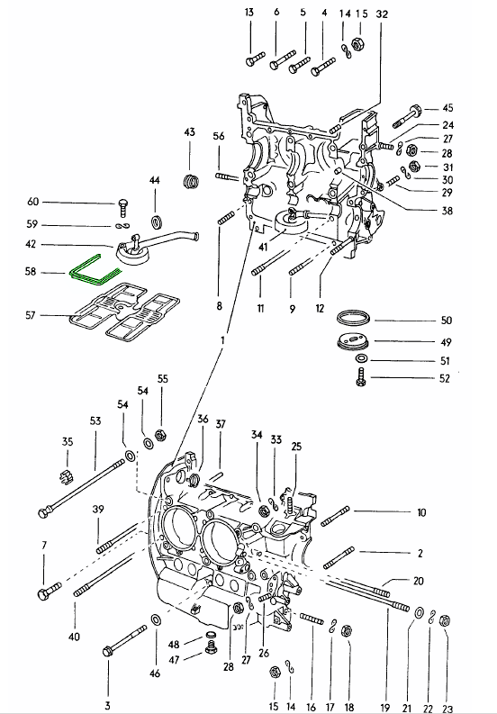 Il basamento costituisce il cuore di ogni motore Porsche e ospita componenti rotanti chiave come l'albero motore, i cuscinetti e le bielle. Garantisce rigidità strutturale, contenimento dell'olio e allineamento preciso delle parti mobili del motore, rendendolo fondamentale sia per le prestazioni che per la longevità.