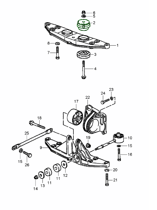 I supporti del cambio fungono da collegamento essenziale tra il sistema di trasmissione e il telaio della tua Porsche, assorbendo coppia e vibrazioni e mantenendo l'allineamento sotto carico.