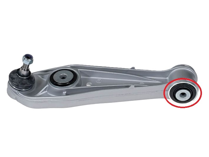 - La boccola posteriore del braccio oscillante inferiore si trova sul perno o sul supporto del braccio oscillante sulla sospensione anteriore. Il suo compito è consentire un'articolazione controllata del braccio, limitando al contempo i movimenti indesiderati.